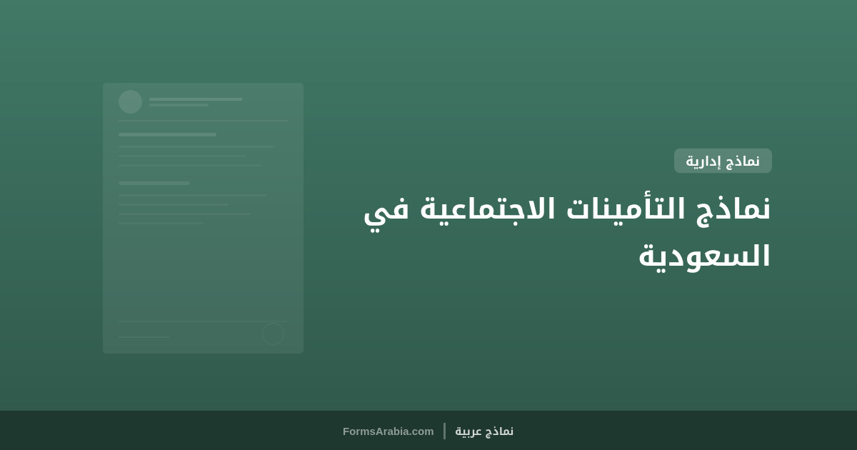 نماذج التأمينات الاجتماعية في المملكة العربية السعودية هي مجموعة نماذج تُستخدم لتنظيم إجراءات المشتركين وأصحاب العمل، ومن أبرزها: